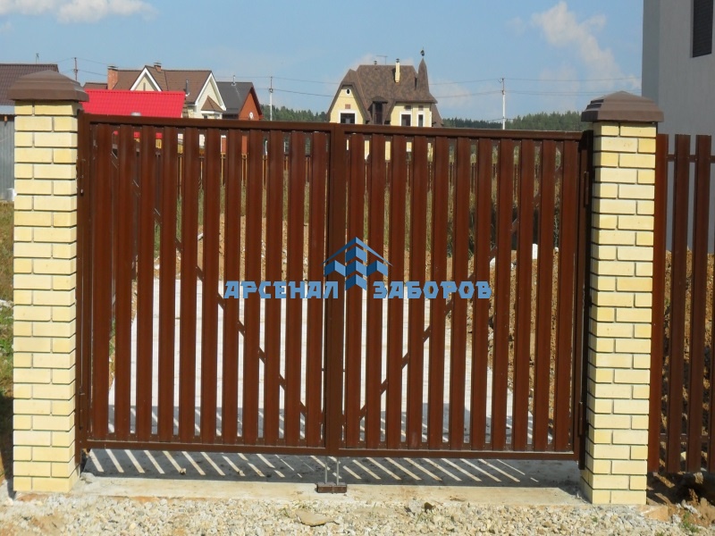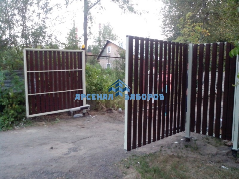 Фото работ - распашные ворота из евроштакетника